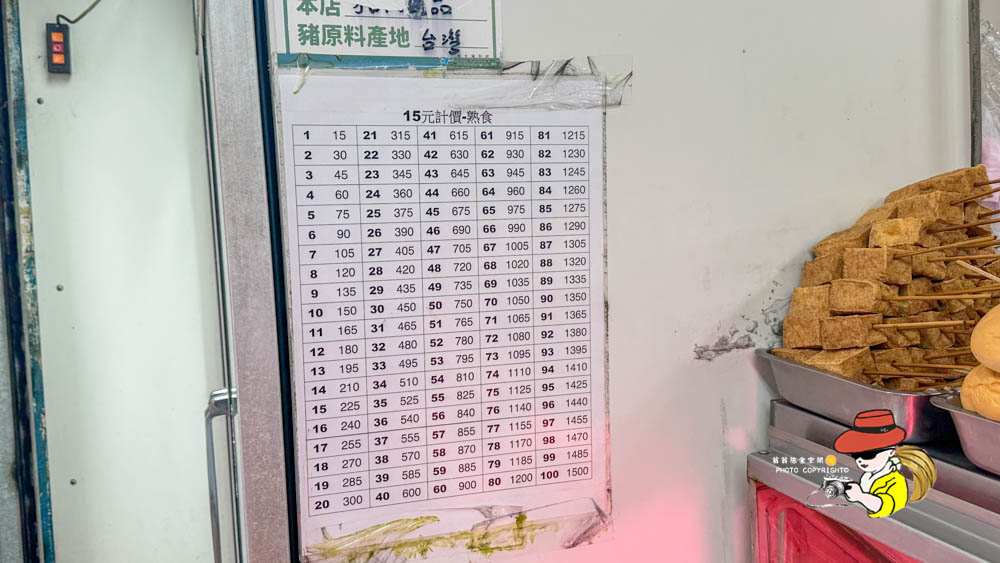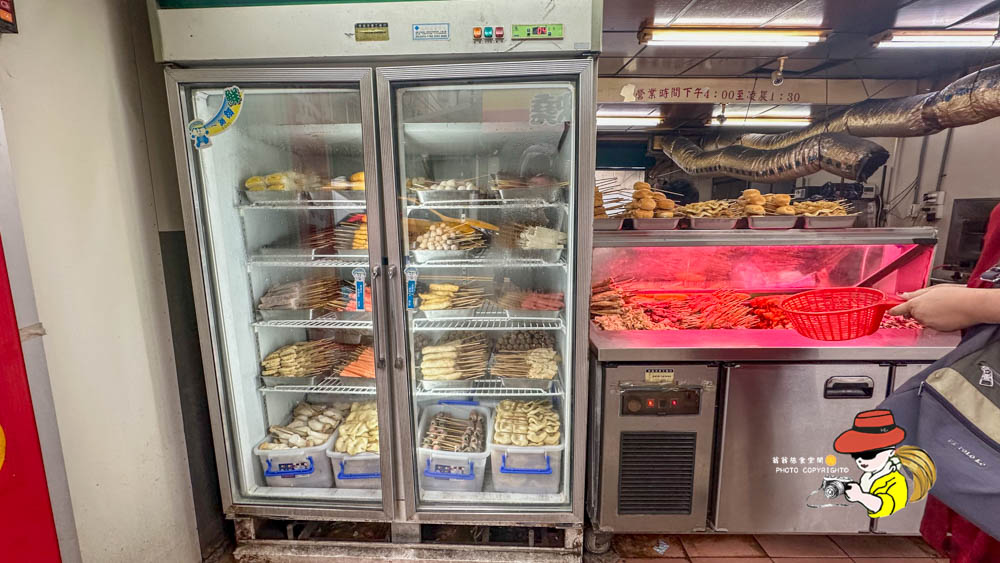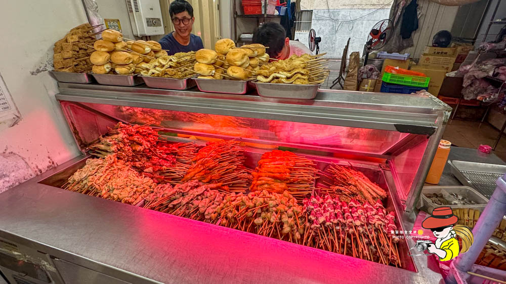 這家店就開在自強路五段上,下午四點多就開始營業,一路賣到深夜,是很多在地人下班後、或是半夜嘴饞時的最佳去處。我通常都是傍晚下班後去,人潮還沒到最巔峰,但還是得等一下,點餐方式很簡單,就是自己拿夾子和籃子夾想吃的,然後交給老闆,他會問你要不要辣。