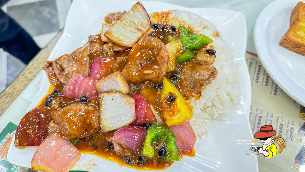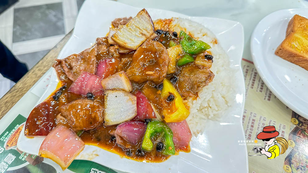 黑胡椒牛肉燴飯,我必須說醬汁是蠻下飯的,但是牛肉比我阿嬤的肉還柴!米飯就很平庸這樣!哈哈哈哈啊!所以我基本上就是吃飯居多!大家自己參考啦!