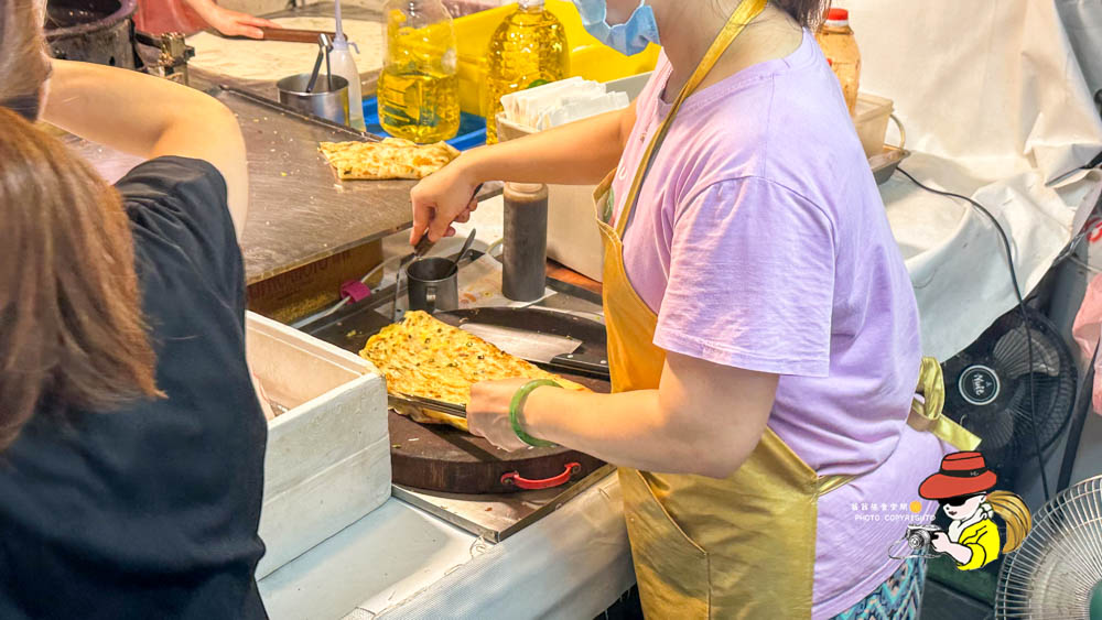 而且看著老闆娘跟員工熟練的製作蔥抓餅的過程,真的也是一種視覺享受,很職人精神!看著蔥油餅在那熱騰騰的煎台,滋滋作響的聲音,聽了就超療癒的啦!煎到金黃酥脆,真的很香!但是很可惜我真的覺得還好!哈哈哈哈!