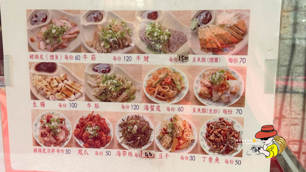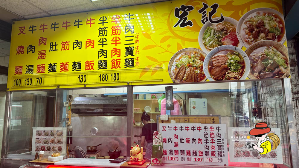 宏記牛肉飯麵專賣店菜單,宏記的品項還算清楚明瞭,網友推薦必吃牛肉三寶麵,另外半筋半肉飯也很推薦!價格嘛,我覺得以現在的物價來說,算是中等,但還在可以接受的範圍啦。除了麵,還有牛肉飯跟牛肉湯、叉燒面,但是我一進門,眼神就飄向了那整櫃的小菜,選性很高,但是不見得每個都有,哈哈哈哈!我上次要點牛筋就剛好沒準備。