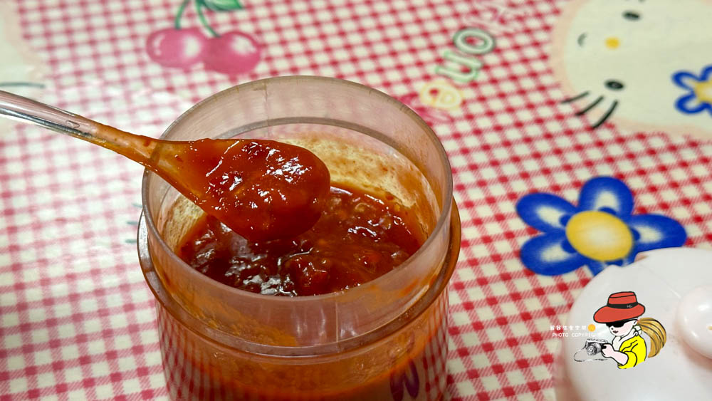 看到小菜櫃點不到牛筋小菜,就直接選奔鳳爪跟海蜇皮,我自己是還蠻喜歡這兩樣小菜,滷得超級入味,味道鹹甜適中,不誇張!我覺得我一個人可以嗑掉兩盤,真的不要小看海蜇皮看似簡單的小菜,先不說供應處,要挑選好吃的海蜇皮也很難欸~我很喜歡海蜇皮吃起來冰涼Q滑的感覺,尤其是那個酸甜開胃的醬汁吃起來很清爽度!,網友很推薦「傳說中的辣椒醬」!我是不太吃辣啦!你們自己去試試看!