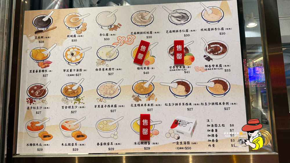 佳佳甜品的菜單,主打就是各式各樣的傳統港式糖水,第一次來的朋友可能會有點選擇障礙,但別擔心,跟著我的推薦點,保證你不會後悔!基本上~他們的甜品都是現點現做,熱騰騰的送到你面前,冬天的夜晚來一碗,暖心又暖胃!我個人建議,如果人多,就多點幾樣分著吃,這樣才能一次品嚐到多種風味。他們家的品項價格都非常親民,CP值真的高到一個不可思議,難怪可以成為在地人的消夜首選!