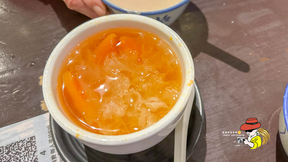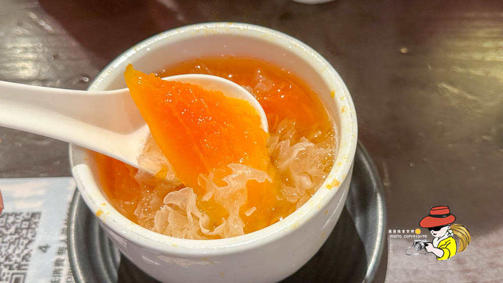 除了兩大招牌,他們家的木瓜燉木耳我也要大推!這道甜品簡直是清流中的清流。木瓜的清甜、木耳的Q彈,加上冰糖熬煮的溫潤,喝起來清爽又滋潤,絕對是吃完重口味大餐後最好的收尾。它不會太甜,也沒有負擔,感覺就是在幫身體排毒,女生們一定會超愛!