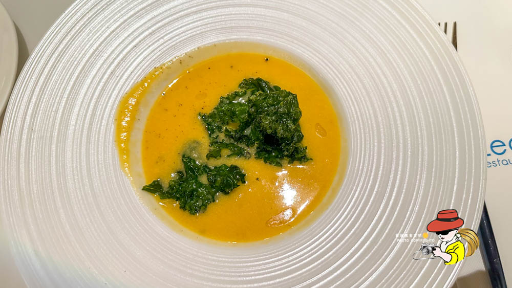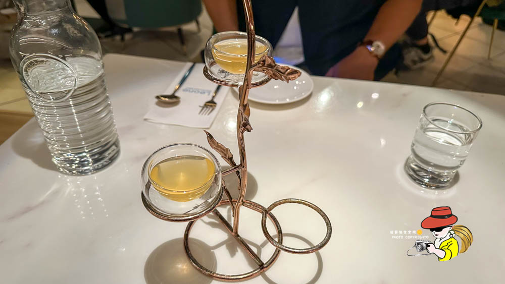 Leone Restaurant & Bar每桌都會送上迎賓前湯,不得不多很有氛圍感,但是就是柴魚味很重又很鹹的湯,不知道是不是當天狀況不好有嚇到啊~這間我不會回訪,謝謝不聯絡!