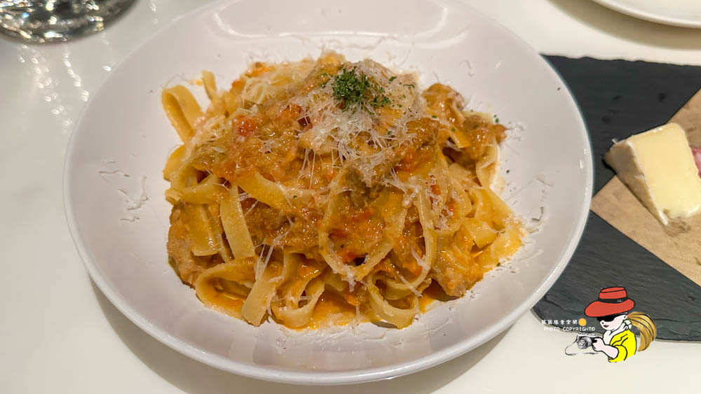 波隆納肉醬鳥巢麵就是滿滿的濃郁番茄肉醬味,如果你是超級番茄控,可能會喜歡!肉醬給得很大方,味道也很夠,但對我來說,就是少了點層次感,吃到後面會覺得有點單一。鳥巢麵的口感是普通,吸附醬汁的能力也很好!
