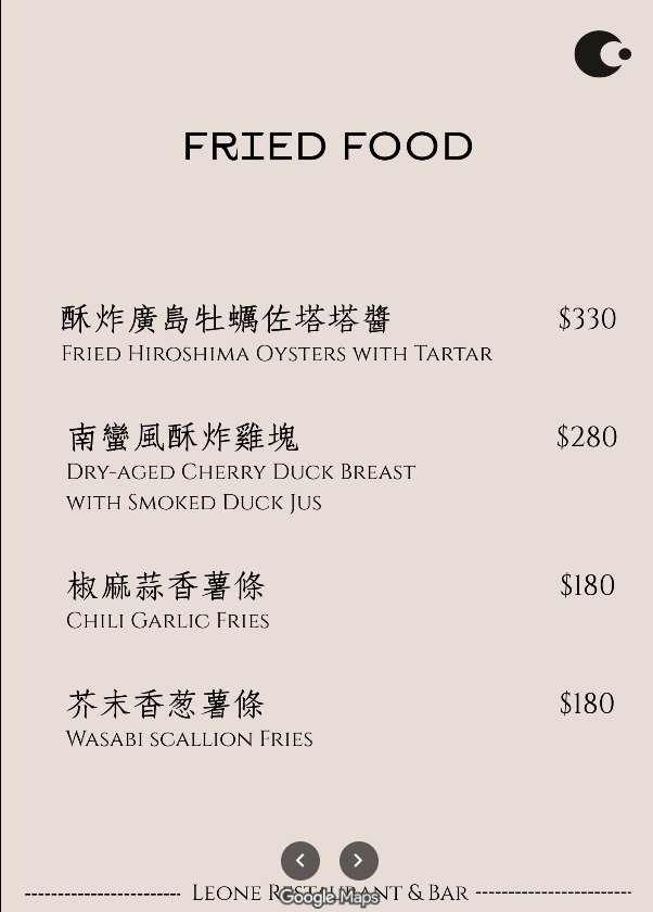如果你是純粹想找個*裝潢美、服務好、可以拍拍網美照的地方,而且對餐點品質要求不高,或者你對噪音的忍受度很高,那Leone Restaurant & Bar或許可以考慮。但如果你跟我一樣,是個對美食有追求、注重味蕾口感層次,那…我會建議你把錢省下來,去別家有更多驚喜的餐酒館吧!