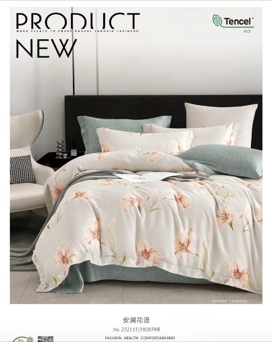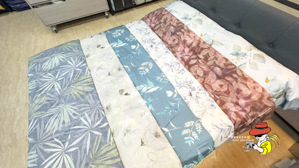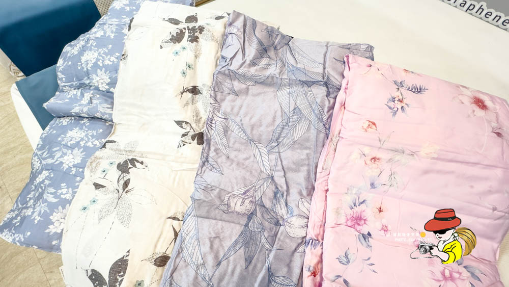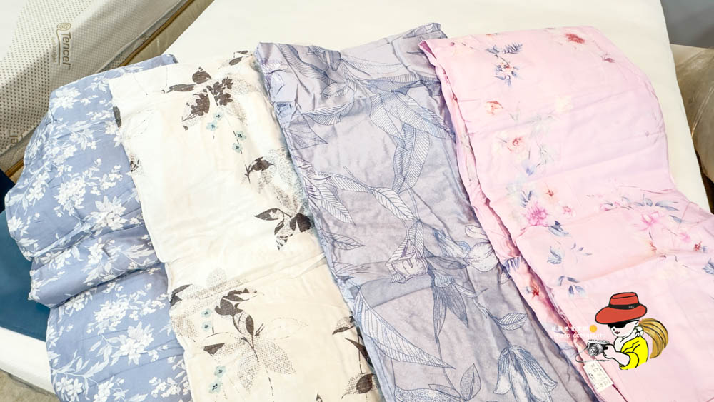 現場天絲床包系列真的很齊全,從40支、60支、80支到100支都有,對我這種會在意觸感的人來說,真的太加分,40支的親膚度其實就很不錯,適合預算有限但又想入手天絲材質的朋友;如果平常睡覺比較容易流汗,60支會更滑順、透氣感也提升不少。80支跟100支就真的屬於高級感那一掛了,摸起來細膩很多,而且花色也會更有光澤,看起來會有種淡淡的高質感,但不是浮誇的那種,現場可以直接摸到、看花色,真的會不小心選擇障礙發作(笑)