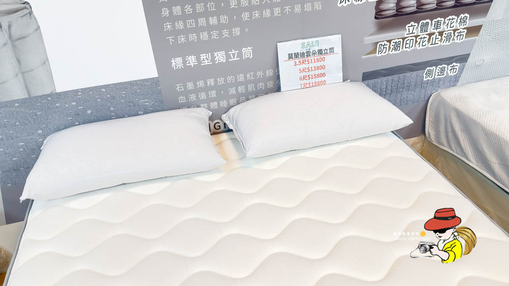 蘆洲寢具床墊購物商城主打價格實在,現場提供各類高支撐床墊試躺體驗,單人床旗艦等級的「硬式護背床墊」都祭出超殺優惠,讓你睡得好又買得划算!