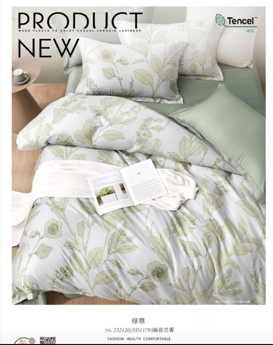 如果你跟我一樣很在意床包的觸感跟透氣度,這組真的可以放入清單。它是100% 萊賽爾纖維(也就是大家熟悉的天絲)製成的 40 支床包組,質地滑順親膚、不會悶熱,蓋起來有一種涼爽乾淨的感覺,蠻適合夏天或冷氣房使用。而且這組是台灣製造、不分尺寸通通 $1500 一套,對我來說算是很實在的價格,花色選擇也不少,整體是屬於那種越用越喜歡、耐看又耐睡的類型。