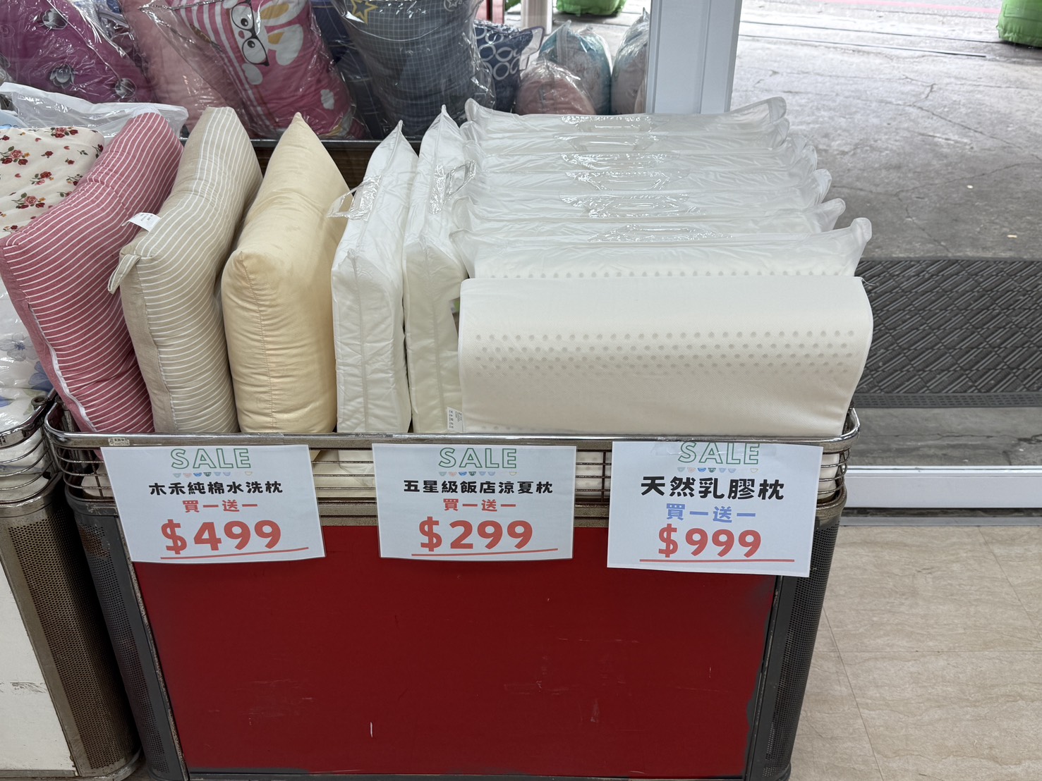 花車上的枕頭都買一送一,另外天然乳膠枕$799元買一送一唷!他們家的枕頭真的多到選擇障礙,高低軟硬、平面或曲線、凹槽設計通通有!像我最愛的就是天然乳膠枕,Q彈透氣、高支撐,凹槽設計完全貼合脖子,超適合夏天使用,睡起來乾爽不悶、肩頸也不僵硬!