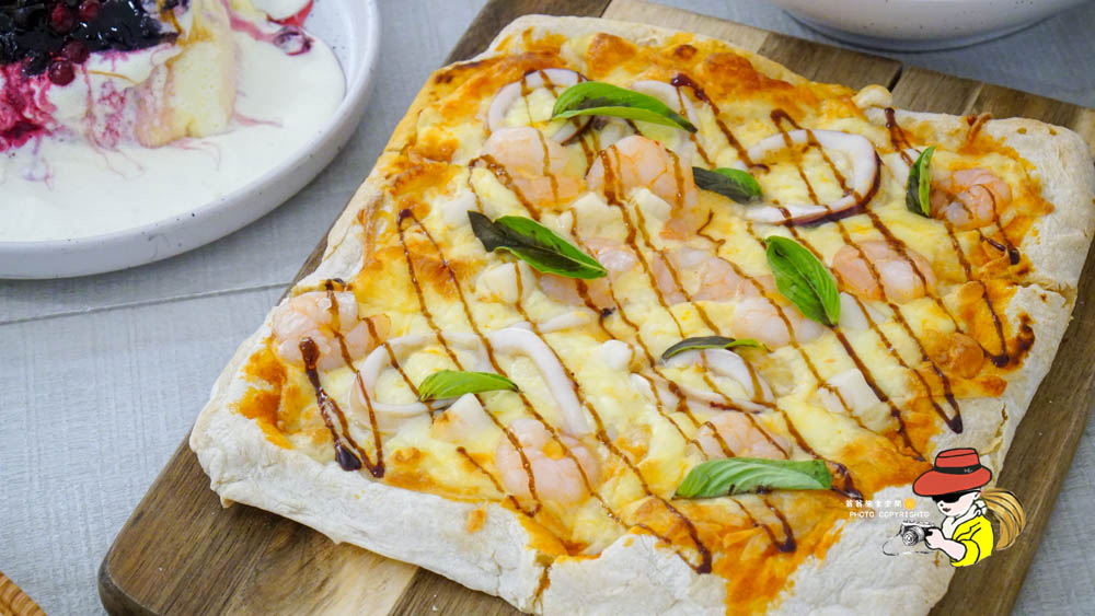 南洋叻沙海鮮羅馬披薩將叻沙湯底濃郁椰奶香完美轉化為披薩醬,搭配彈牙蝦仁、淡菜與羅馬薄脆餅皮,每一口都是南洋風味的衝擊。辣中帶椰奶甘甜,層次超豐富,每口乳酪香氣都能勾出披薩靈魂味蕾!我覺得很特別的是餅皮沒有那種,厚粉感!吃起來挺爽脆的!