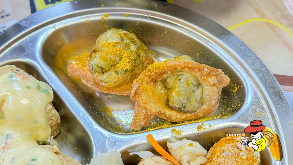 香酥臭餛飩!餛飩炸得外皮金黃,薄脆到一個不行!一口咬下,那股香氣直接衝上腦門,但是口感吃起來的還蠻普通的,小小一顆是很方便入口啦!但是吃過就好!