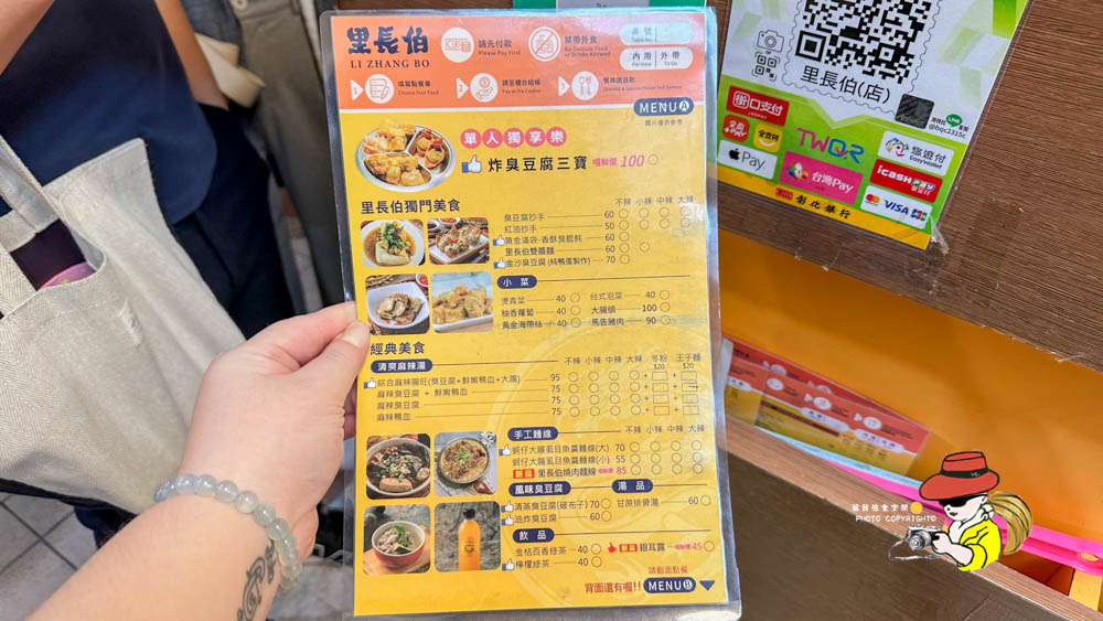 李掌伯的菜單品項雖然不多,幾乎都是銅板價,店內主打的是「炸三寶」,裡面有金沙臭豆腐、香酥臭餛飩和經典臭豆腐,這三樣基本上都是網友推薦必吃選項!另外網友也很推薦蚵仔麵線、麻辣鴨血,本來想吃臭豆腐,想想不然吃炸三寶好了,點餐流程也很簡單,先入座後點餐!