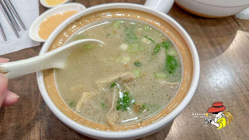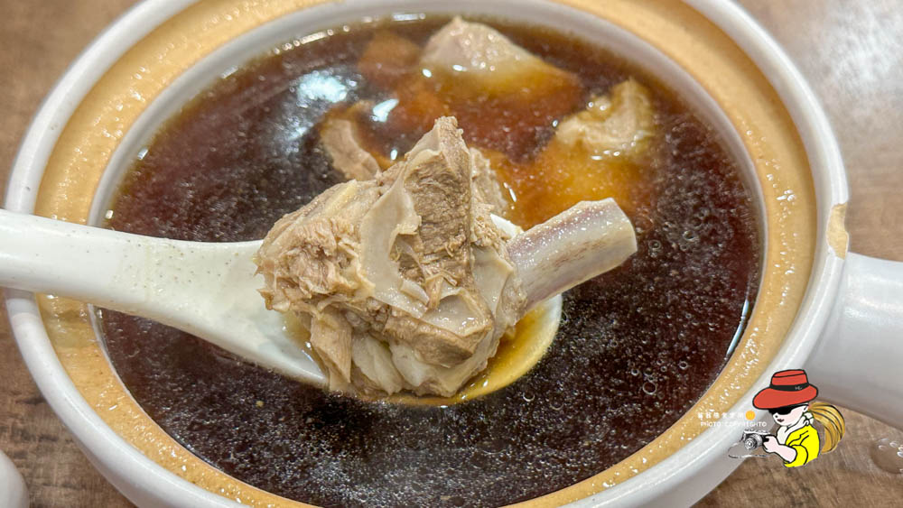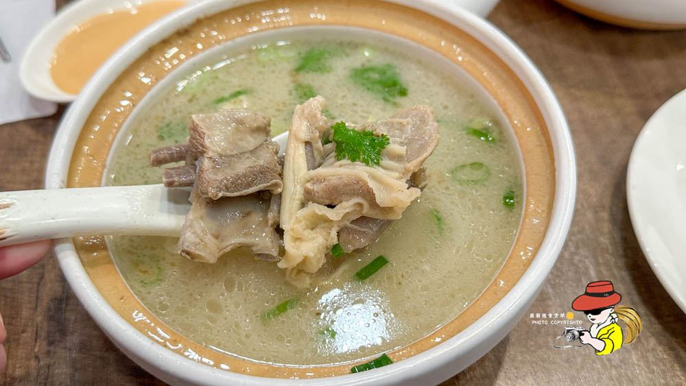 清燉羊小排湯,我認真說湯頭還算清澈,喝下去第一口是蠻清甜順口,羊肉吃起來中規中矩淡淡的羊騷味,肉質吃起來沒有那種期待中的軟嫩Q彈,就是一塊羊肉而已。對~就是一塊羊肉,我覺得冬天想要一碗熱呼呼的羊排湯可以考慮看看,湯頭是真的蠻順口的!