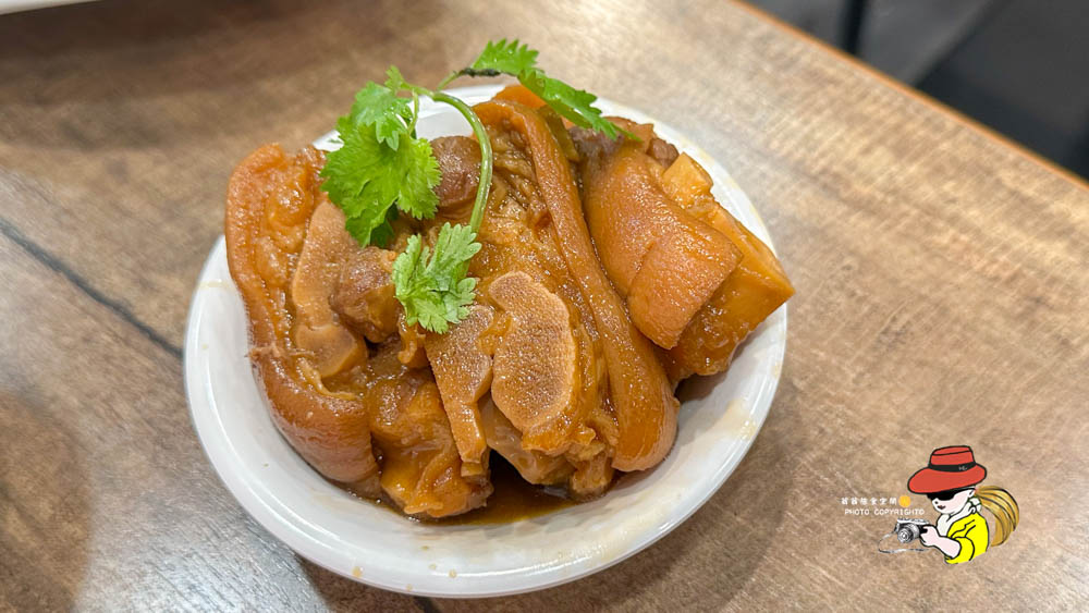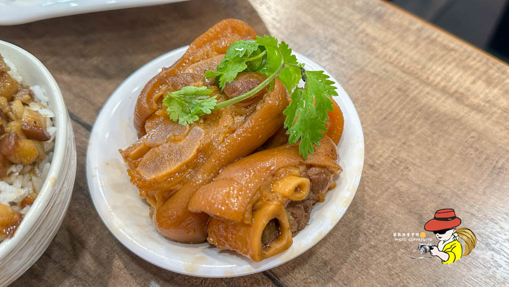我覺得滷豬腳真的救了這間店,根本是今天所有配角裡的MVP啊!豬腳滷得油亮油亮,看起來就超級誘人,一口下去那皮Q肉嫩的口感,膠質感滿滿,卻一點也不油膩!醬汁滷得超級入味,鹹甜適中,這滷豬腳真的可以吃!