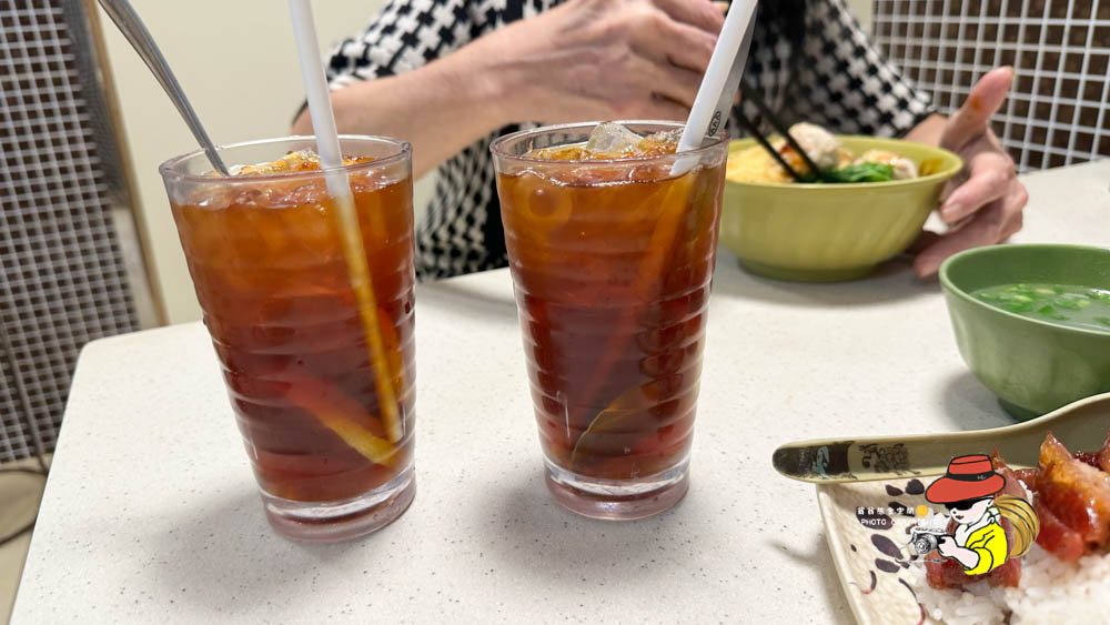 凍檸茶就中規中矩,基本上香港的茶餐廳或是麵館的凍檸茶都不會雷啦!大家安心服用,但是如果有很雷的,請記得跟我說,然後還會免費大骨熬的湯,一定要喝喔!很濃郁香甜!