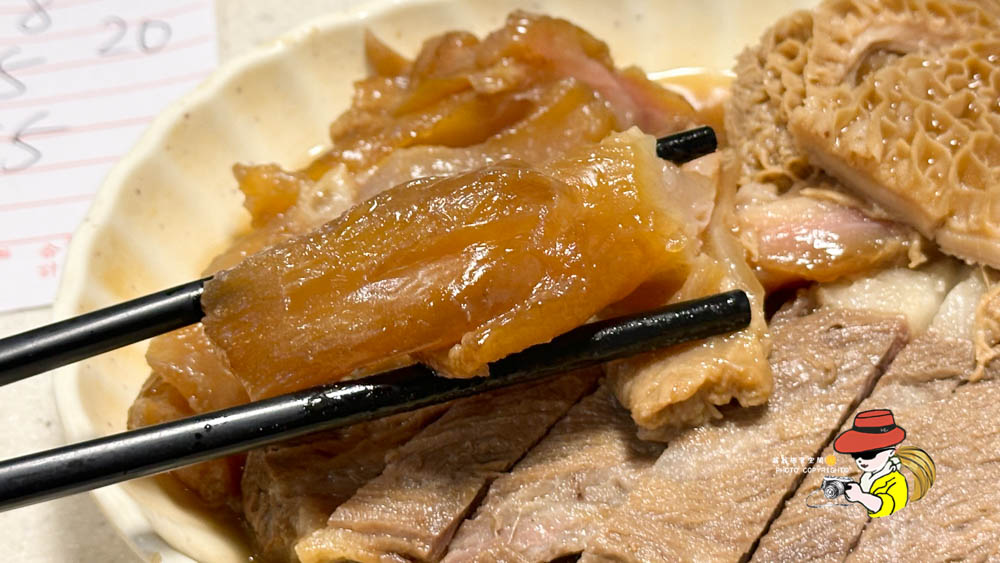 森記牛三寶有牛腩、牛筋、牛肚,牛筋真的滷得恰到好處,晶瑩剔透,吃起來非常綿密,膠質滿滿卻一點都不黏膩,牛肚我自己沒有很喜歡,因為我本身就不太吃,但是他們處理得非常乾淨,沒有什麼腥味,每一口都能感受到滷汁的鹹香,但是真的比較偏鹹,本身不吃重口味的人吃到可能都覺得要洗腎了吧?牛腩吃起來還算嫩口,沒有吃起來很柴口,所以叫三寶其實蠻合理的,小缺點就是比較重鹹啦!