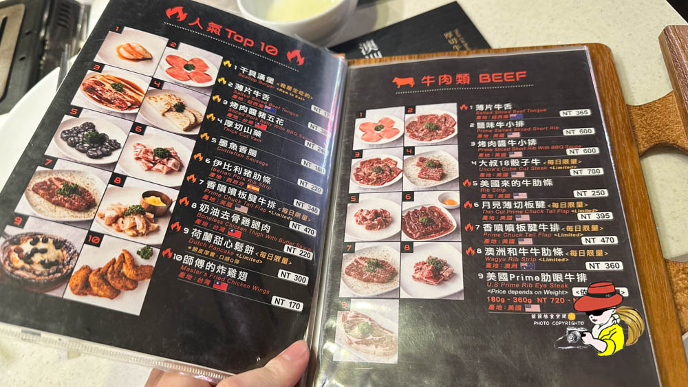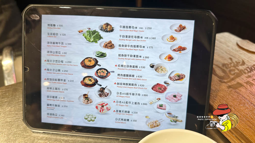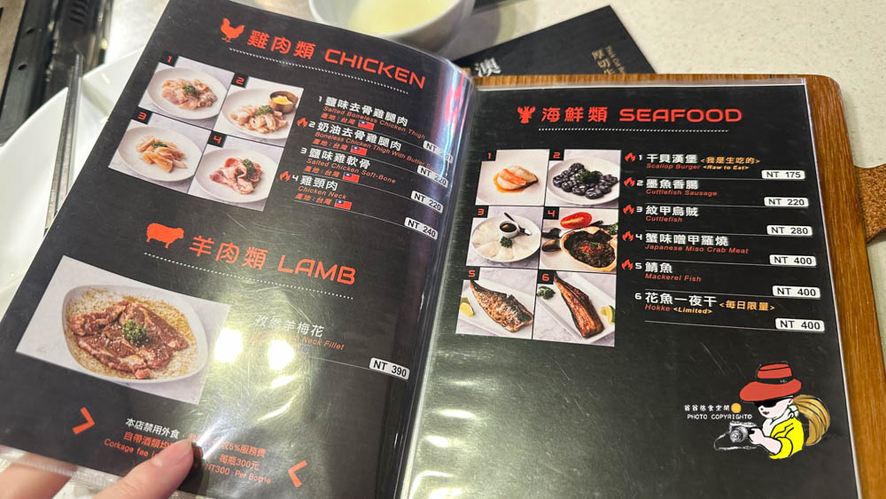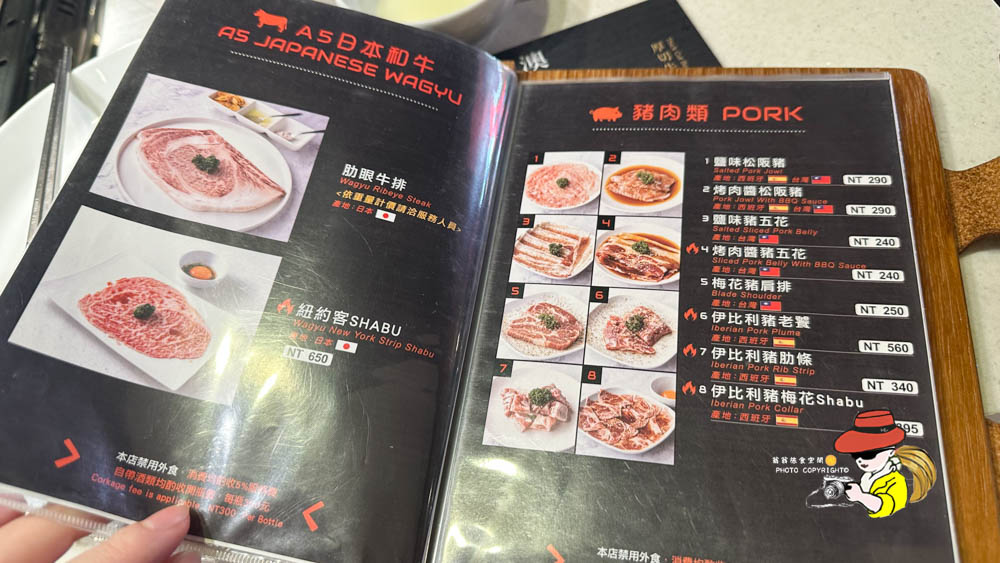 UNCLE SHAWN燒肉餐酒館價目表菜單,他們不是吃到飽,走的是精緻單點的模式,他們的菜單真的超級豐富,從來自不同國家的精選牛肉(日本A5和牛、澳洲和牛、美國Prime等等),到伊比利豬、去骨雞腿肉、羊小排,想吃的肉品幾乎都能在這裡找到,除了肉肉,海鮮、蔬菜、炸物、沙拉、湯品,甚至甜點跟小菜,選擇多到會讓人有選擇障礙!