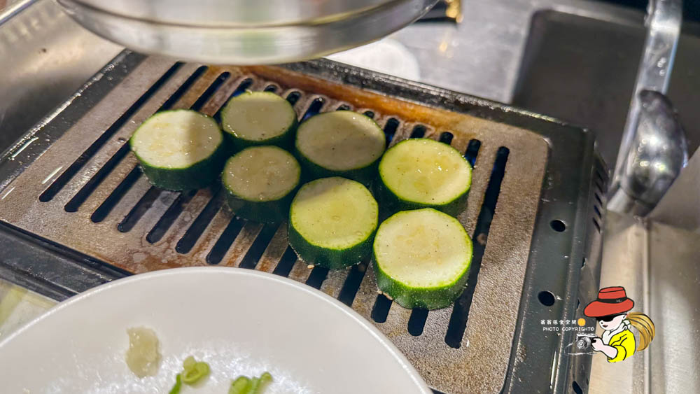別以為只有牛肉厲害,他們的伊比利豬伊比利豬肋條烤起來肉質鮮嫩多汁,完全沒有豬腥味,烤節瓜吃起來也超脆口的,真心愛!認真覺得這邊的服務人員烤功一流!炸牛奶我沒有拍到,但是我認真推薦炸牛奶一定要吃!