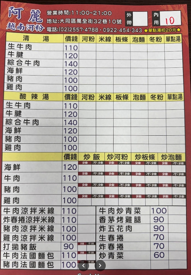 阿麗越南河粉菜單!是不是品項超多,而且價格都超佛心!從經典的河粉、米線,到我超愛的打拋豬飯,還有必喝的海鮮酸辣湯,而且份量都給得很大方,根本是小資族的天堂,吃飽飽又不會讓荷包大失血!