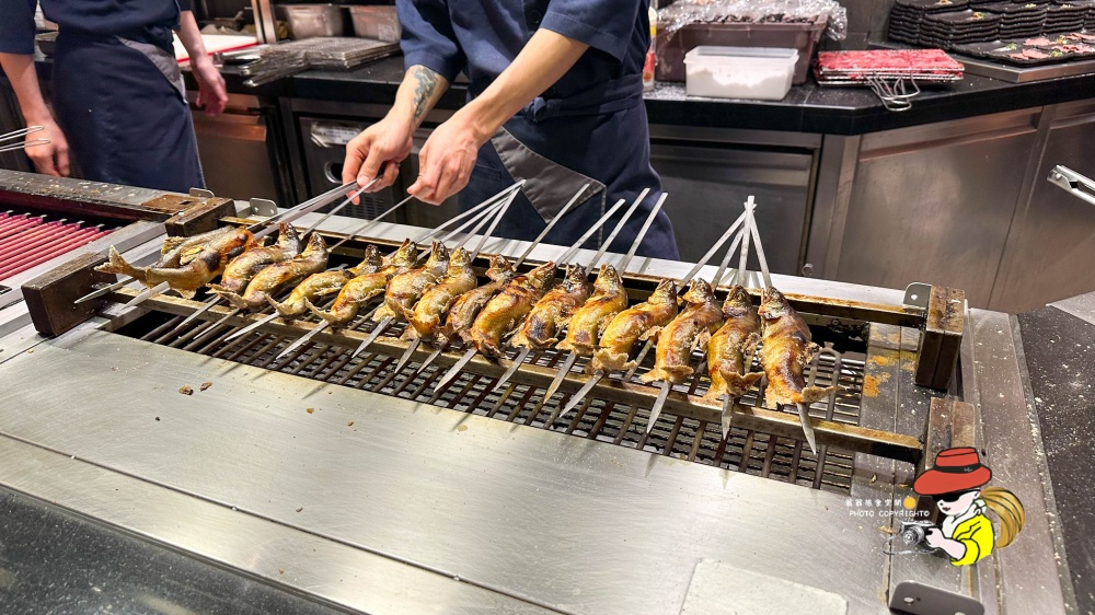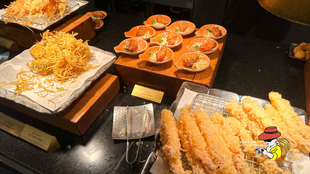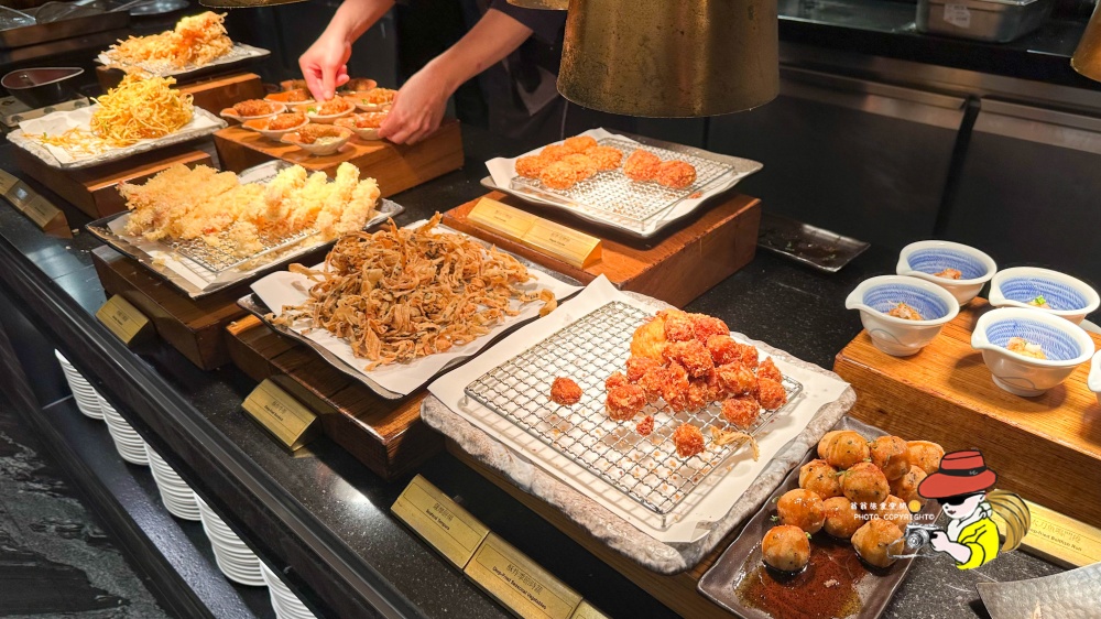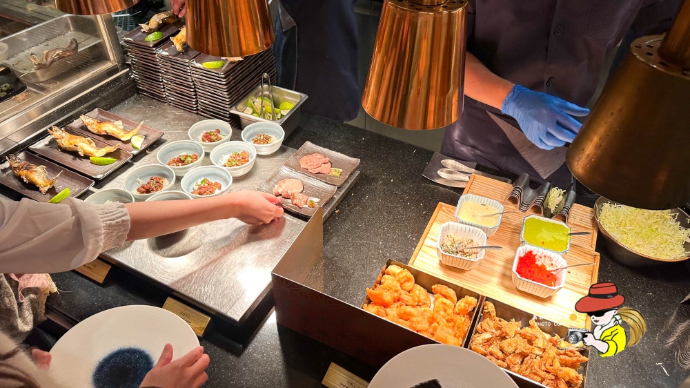 烤物區的選擇很多,和牛滷肉飯、牛舌、烤香魚、烤牛肉串,烤花枝烤物火侯控制得中等,不會過焦也不會太生,香氣十足。炸物區的天婦羅炸蝦麵衣薄脆,蝦肉新鮮,還有炸野菜。